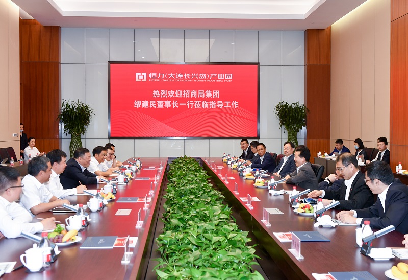 Group Chairman Miao Jianmin met with Chen Jianhua, Chairman of Hengli Group, at Dalian Changxing Island. Executive Vice Presidents Wang Hong and Deng Renjie attended the meeting.