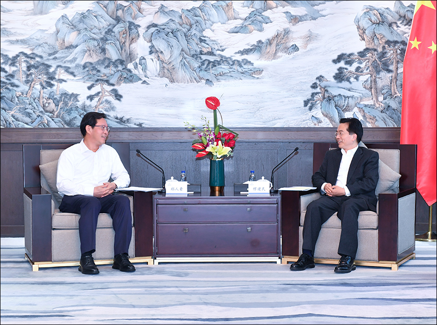 On October 14, Group Chairman Miao Jianmin met with Zheng Renhao, Party Secretary of Zhanjiang and Director of the Standing Committee of the Zhanjiang Municipal People's Congress, and Zeng Jinze, Deputy Secretary of Zhanjiang Municipal Committee and Acting Mayor of Zhanjiang Government. Deng Renjie, Executive Vice President, also attended the meeting.