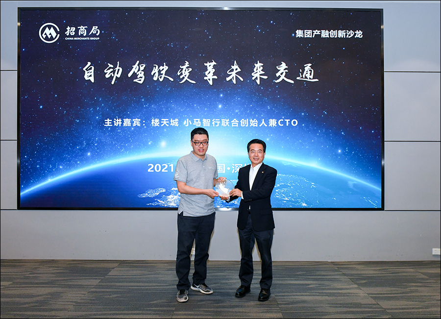 On May 6, the first industry-finance innovation salon of the year 2021 was held in Shekou. Lou Tiancheng, co-founder and CTO of Pony.ai was invited to deliver a keynote speech entitled "Autonomous Driving Transforms Future Transportation". Group Chairman Miao Jianmin met with Lou Tiancheng and attended the salon. Lou Tiancheng introduced the development history, basic principles and latest progress of autonomous driving technology and presented the application examples and broad prospects of autonomous driving technology.