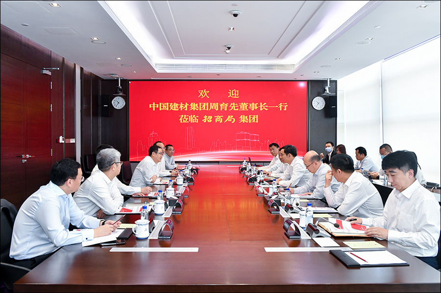 On May 22, Group President Hu Jianhua met with Zhou Yuxian, Chairman of China National Building Material Group (CNBM). Hu Jianhua said CNBM was a leading enterprise in the industry, and the cooperation between the two parties had broad prospects. Zhou Yuxian said that CNBM and China Merchants Group had a favourable foundation for cooperation. He hoped that the two parties could strengthen in-depth strategic cooperation in science and technology innovation and industrial development and further broaden the areas of cooperation to achieve a win-win outcome by giving full play to CNBM's leading business advantages in the fields of construction and new materials.
