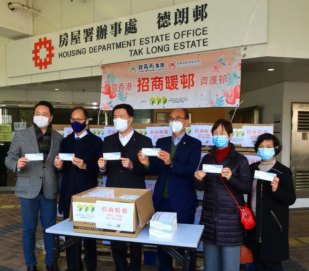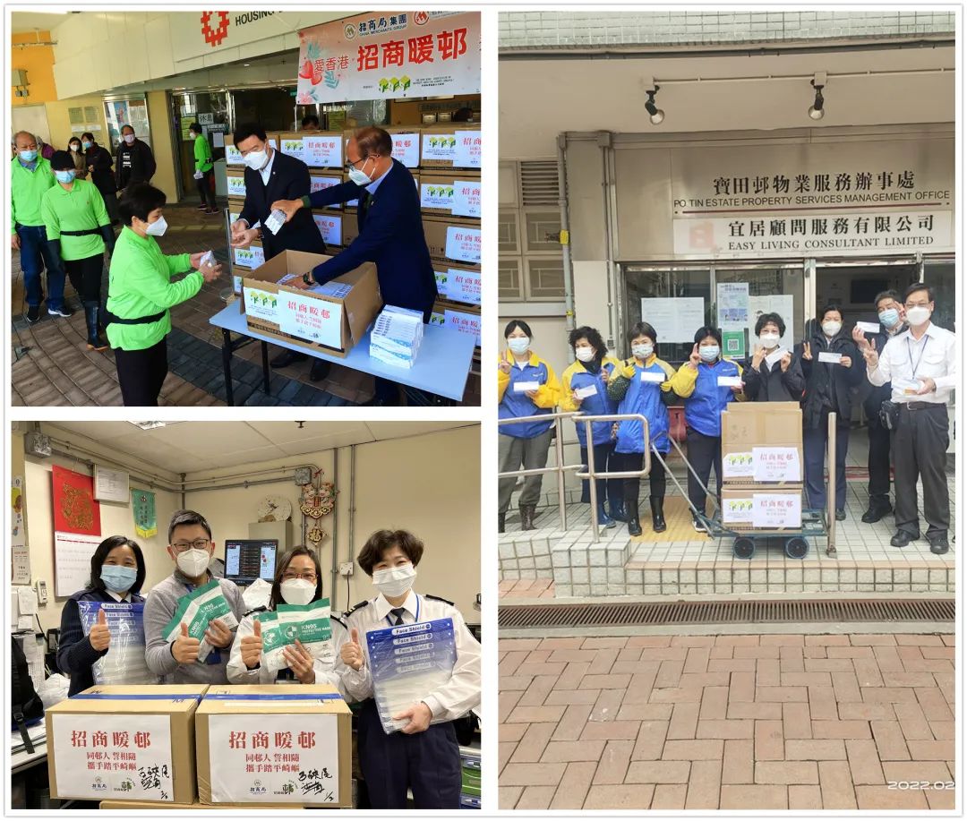 Amid Hong Kong's strenuous wrestle with the fifth wave of the pandemic, China Merchants Group has been providing unflinching support for the city. The company is providing local grassroots community with necessities and economic relief, including 175,000 rapid testing kits, 328,000 N95 masks, 68,000 protective clothing, 8,170 boxes of surgical masks, 8,700 sanitizing sprays and 7,040 OTC drug, as well as food and supermarket coupons.