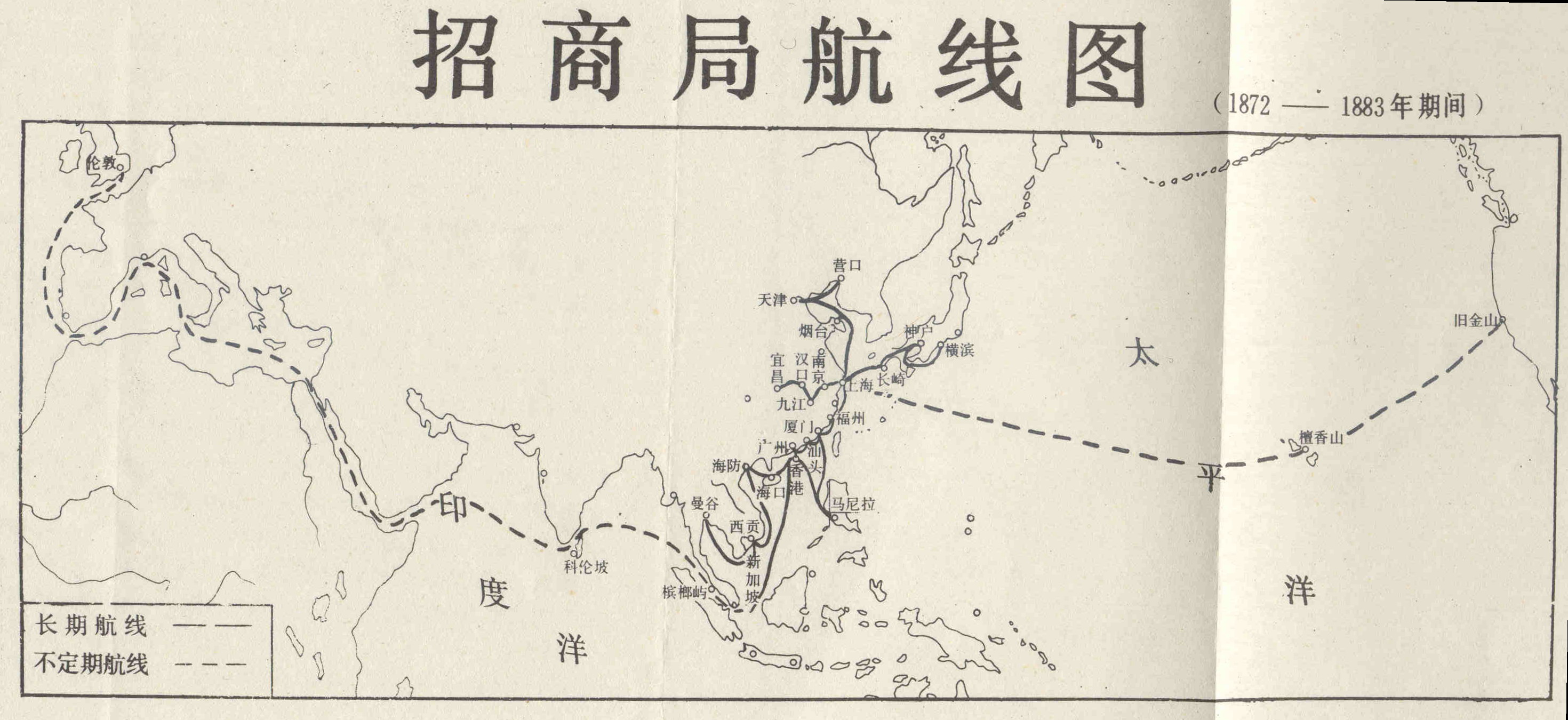 1873年8月,招商局“伊敦”轮开航日本神户、长崎,开辟了中国第一条远洋商业航线。