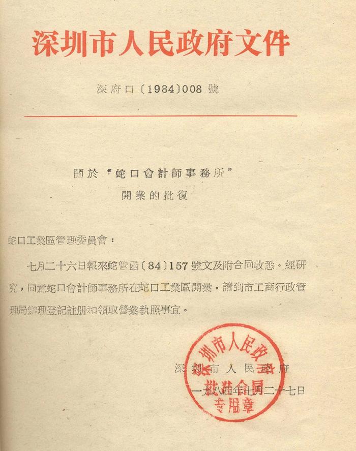 1985年1月25日,蛇口会计事务所正式开业,主要为中外工商机构提供财务、会计及税务方面的咨询服务。这是国内第一家社会办会计师事务所。
