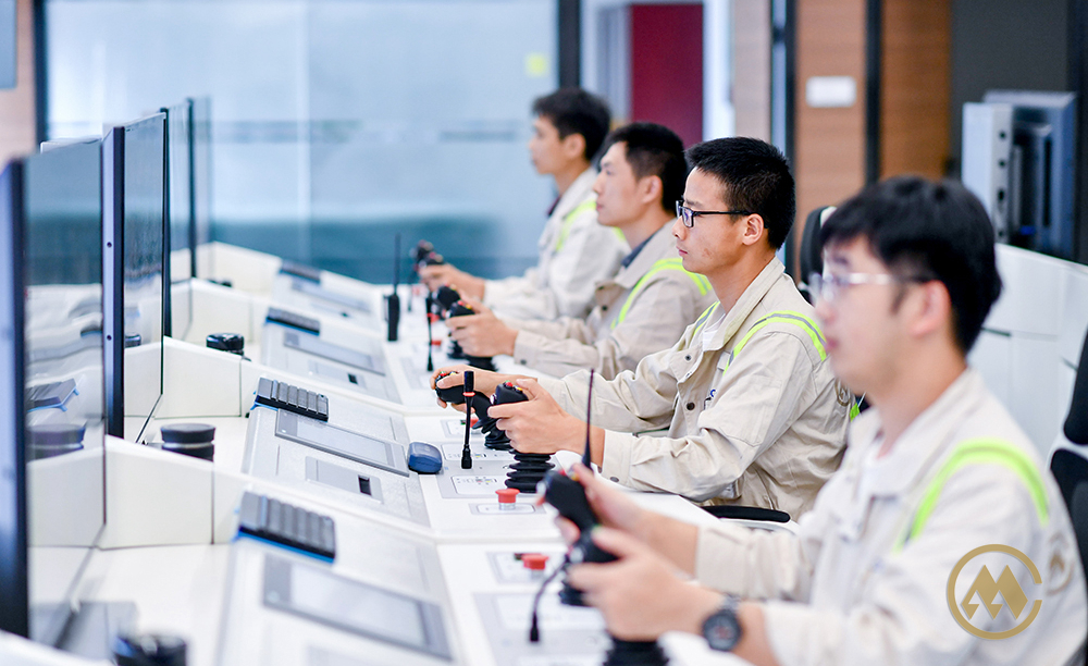 场桥实现远程控制后,打破了过去一人只能操作一台设备的限制,现在从人机配比上算,最高峰曾一人控制五台作业设备。
