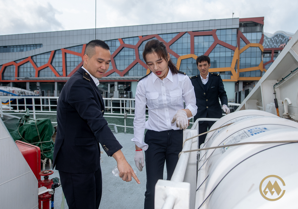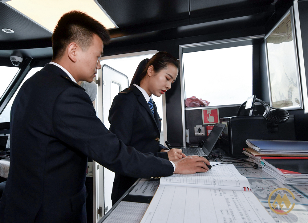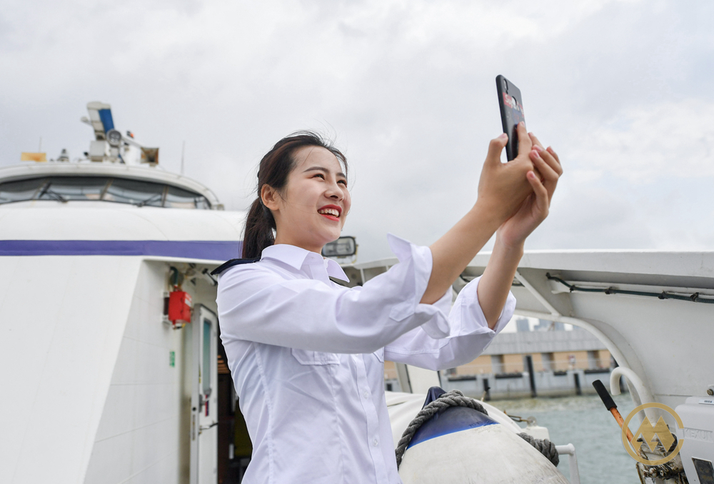 当小何决心要从事这一行业时,她便在心里立下一定要成为高速客船甚至是未来邮轮的女船长。她在毕业那年获得招商轮船奖学金时发表过感言,将来有一天驾驶着万吨巨轮,驰骋在蔚蓝的海面,这就是她的蔚蓝梦想。(唐蜀全 摄)