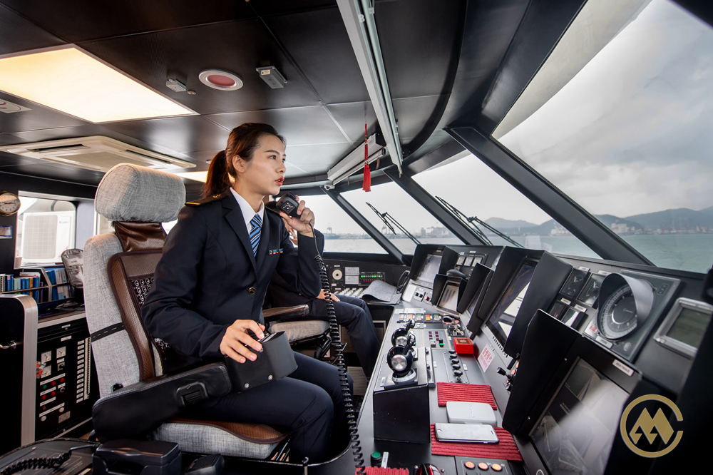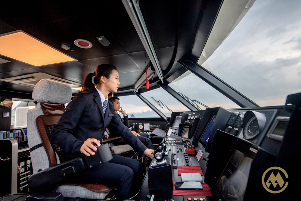 她叫何倩倩,招商局集团旗下招商蛇口邮轮事业部迅隆船务高速客船迅隆7的驾驶员,目前是三副,毕业于上海海事大学航海技术系,是中国内地第一位驾驶高速客船的女性驾驶员,也是招商局集团唯一一位女性高级船员。(唐蜀全 摄)