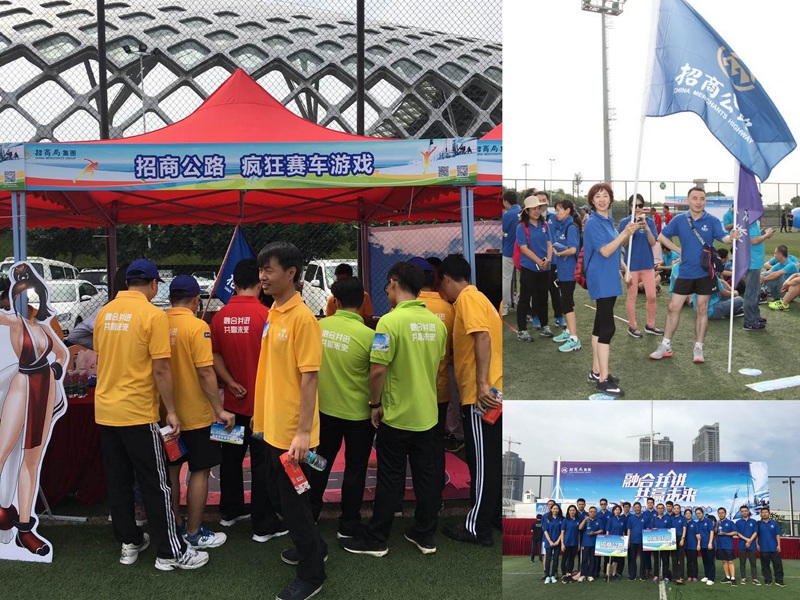 鹏城,创客之都,招商公路深圳办公区的员工们参加了集团举办的趣味运动会,在开幕式上与集团本部、招商交科院的代表组成第一方队率先入场。在随后负责筹备的“疯狂赛车”游戏展台前,大家集思广益、做好服务,尽情感受着同为招商人的自豪之意。