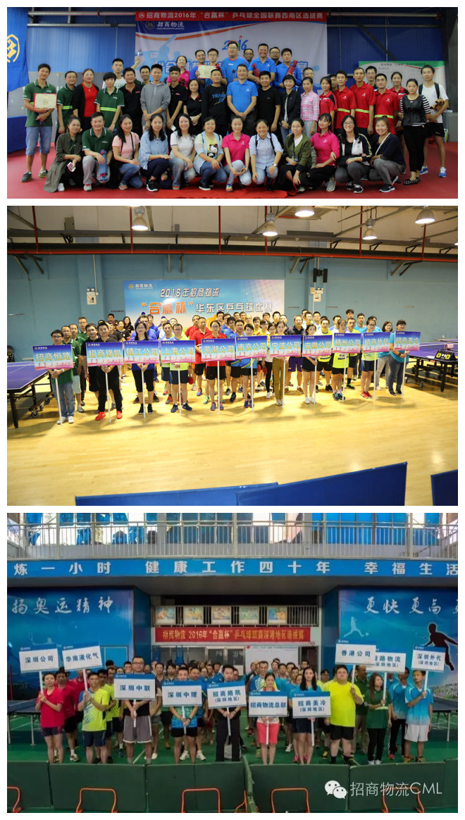 为庆祝集团2016年“公司日”,招商物流举办了“合赢杯”乒乓球联赛,目前“合赢杯”乒乓球联赛各区域选拔赛正火热开展中。“合赢杯”乒乓球联赛是招商物流第一次覆盖全国各区域、各业务板块的体育赛事,分区域选拔赛及全国总决赛两个阶段开展。按照活动安排,9月份,招商物流深港地区、华南地区、华东地区、华北地区、东北地区、西北地区、西南地区、华中地区等八个区域已经陆续完成本区域选拔赛。区域选拔赛获胜队伍将代表各自区域参加10月底举行的招商物流“合赢杯”乒乓球联赛全国总决赛。