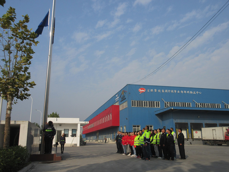 10月17日上午,为庆祝招商局集团“公司日”,郑州公司举行了简朴而庄重的升旗仪式,郑州公司及招商美冷郑州公司全体员工共五十余名员工参加了升旗活动。上午九点整,伴随着庄严的《义勇军进行曲》,五星红冉冉升起,迎着朝阳飘扬;伴随着激昂的《招商局之歌》,招商局旗和招商物流旗徐徐上升,迎风舒展,全体员工满怀对祖国的热爱和身为招商人的自豪,面向国旗和司旗行注目礼。