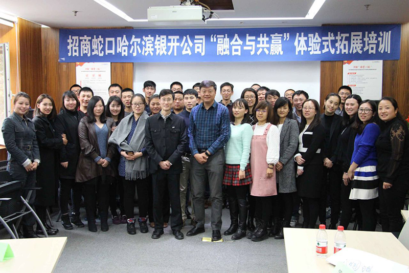 招商蛇口哈尔滨银开公司组织了体验式拓展培训,在公司日当天以继续用知识武装头脑,用业绩回报集团。