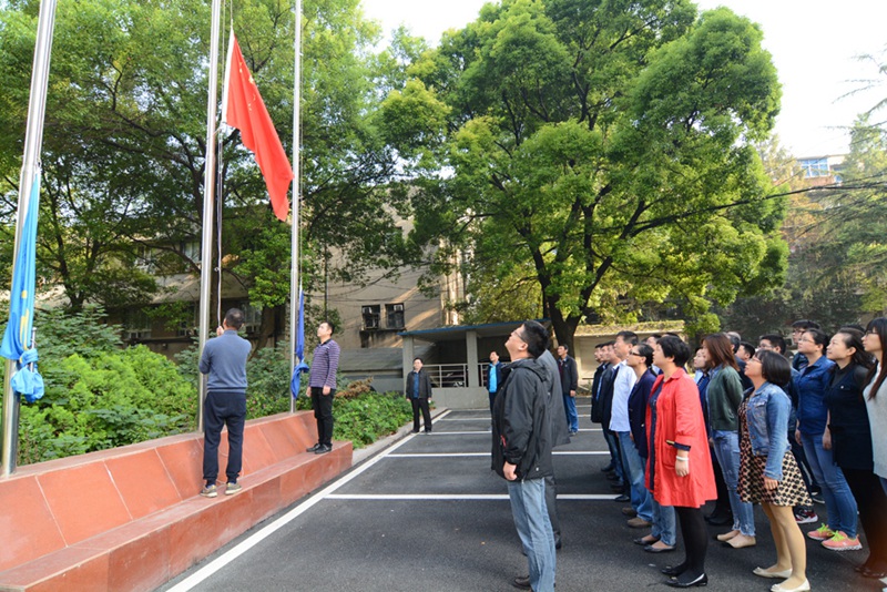 长航重工长江船舶设计院组织院领导、部门党政负责人以及工会、团委职工代表隆重集会,举行了升国旗和升企业旗仪式。