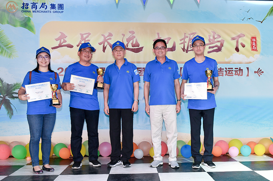 活动根据各队捡拾垃圾的数量、重量和分类,分别评出了“最积极团队奖”、“招商局海洋环保卫士奖”和“最特别贡献奖”。其中,获得“招商局海洋环保卫士奖”一等奖、来自集团区域发展部的“战绩”为152公斤,他们同时因捡拾到了一个大型汽车轮胎获得了“最特别贡献奖”。