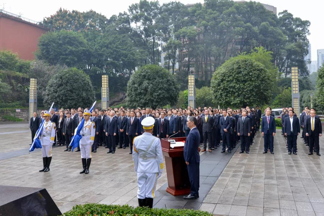 2018年集团公司日在渝招商系升旗仪式在招商交科隆重举行,来自招商交科及招商银行、招商蛇口、招商证券、招商公路、中外运股份、长航集团等招商系驻渝单位的领导及员工代表300余人齐聚在重庆招商局大厦交科院广场顶风冒雨参加了活动。