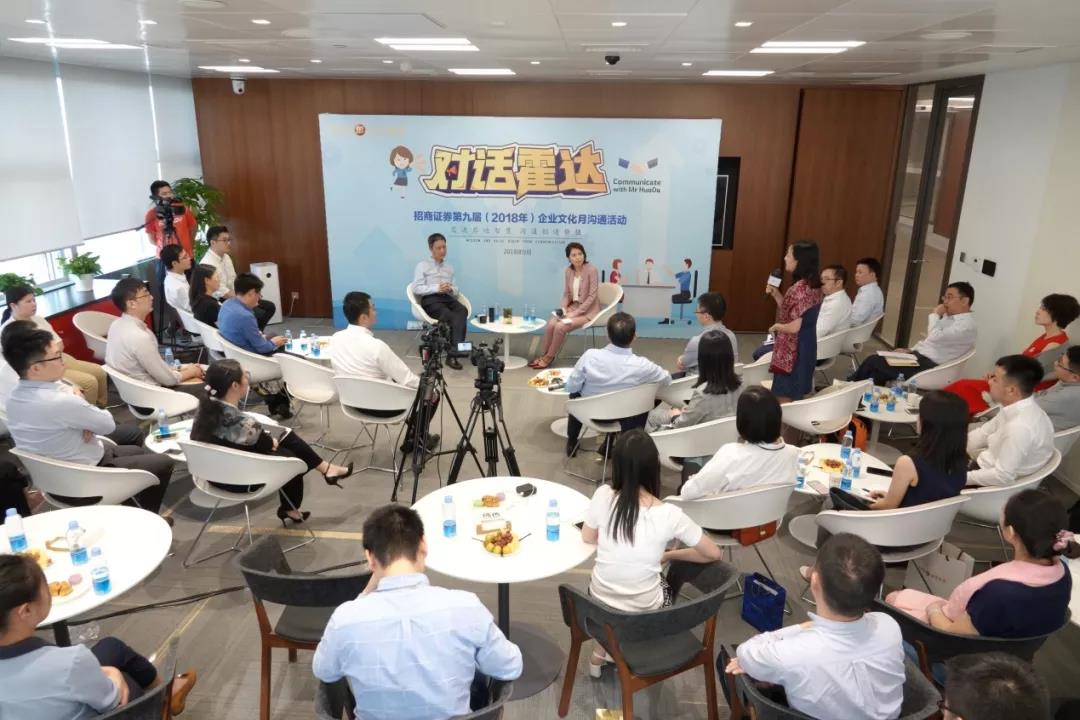 9月21日,招商证券在新大楼举行“对话霍达”沟通活动,以员工与高管对话交流、视频直播的方式庆祝招商局集团公司日,展望公司未来发展,鼓励员工“立足长远,把握当下”。