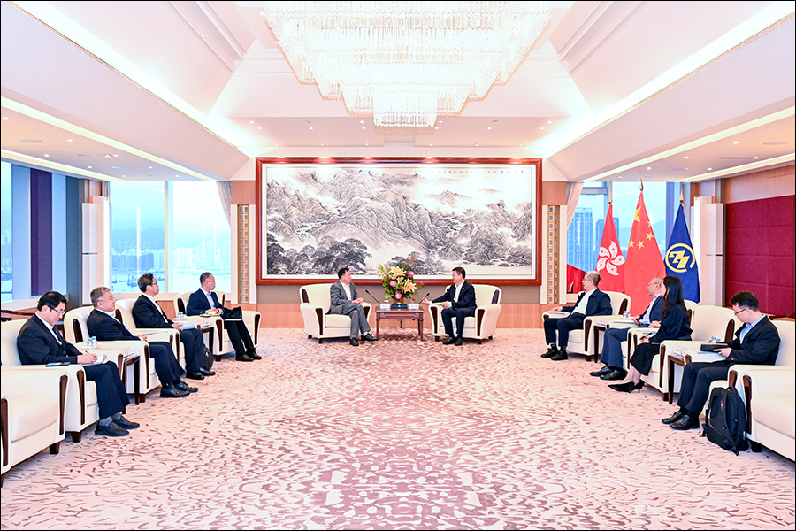 10月10日,集团副总经理邓仁杰在香港招商局大厦会见中国中检党委副书记、董事高和生一行,双方就加强合作进行交流。集团总经理助理、董事会秘书,集团办公室主任张军立参加会见。