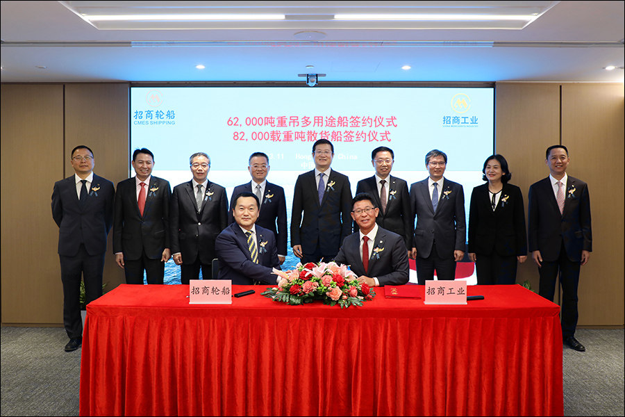 11月13日下午,招商工业与招商轮船在香港举行多型船舶系列订单签约仪式,进一步携手深化集团内部战略协同。招商局集团副总经理邓仁杰、冯波鸣、王秀峰出席签约仪式。