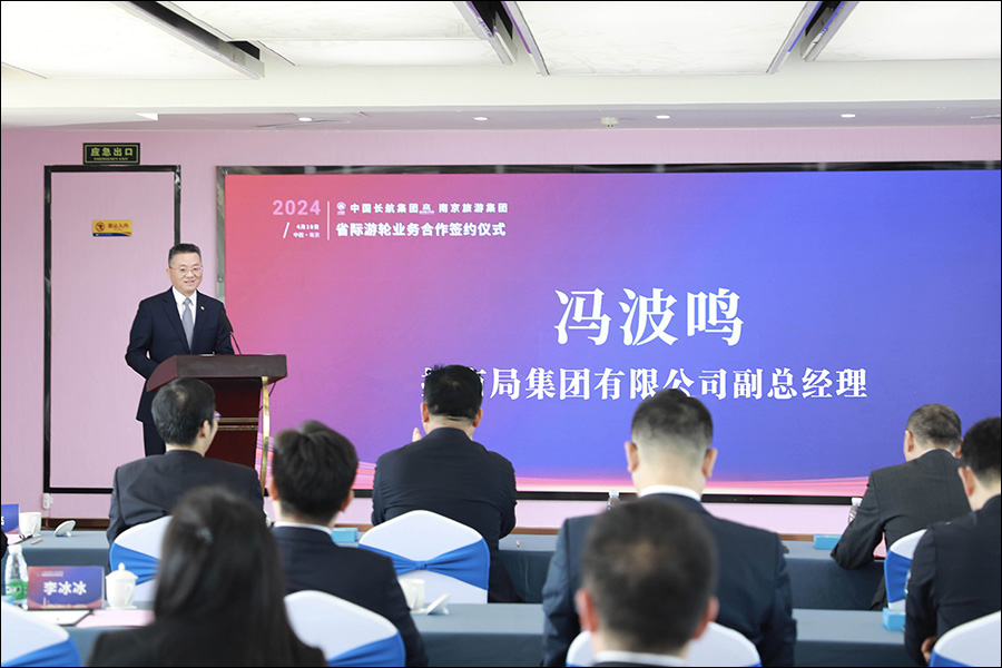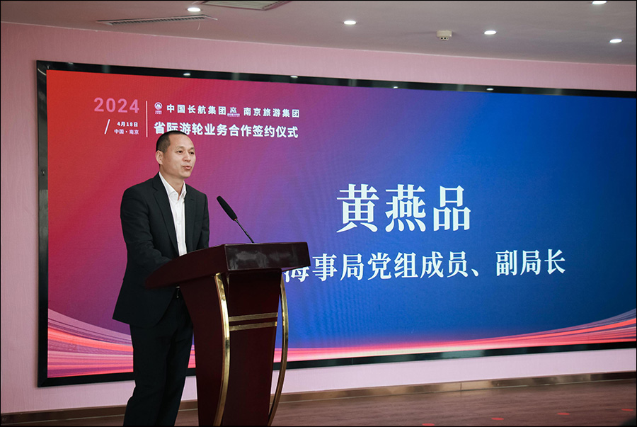 4月18日,南京旅游集团与长航集团在南京五马渡长江传奇游轮举行省际游轮业务合作签约仪式。招商局集团副总经理冯波鸣,南京市副市长孙百军、江苏海事局副局长黄燕品出席仪式。
