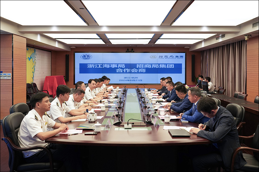 6月21日,招商局集团与浙江海事局在杭州举行合作会商会议,招商轮船、长航集团与浙江海事局发展战略研究中心、宁波海事局、舟山海事局签署战略合作协议。招商局集团副总经理冯波鸣、浙江海事局局长邱铭出席会议并见证签约。