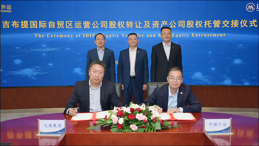 在冯波鸣、阿布巴卡等见证下,中国外运与辽港集团代表签署了吉布提国际自贸区运营公司股权转让及资产公司股权托管见证书。
