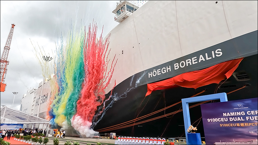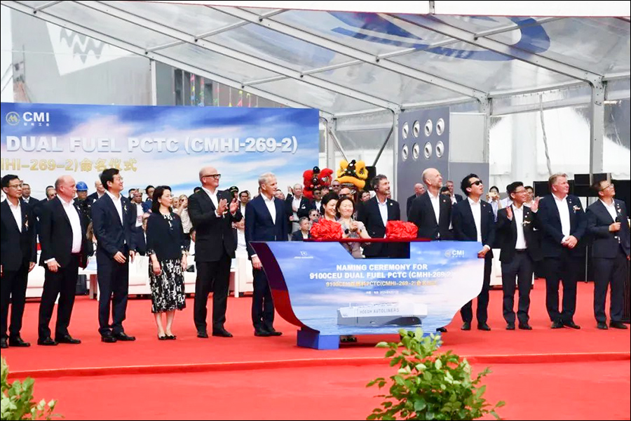 9月11日,招商工业在海门基地举行“极光级”9100车汽车滚装船(Pure Car and Truck Carrier,PCTC,又称汽车运输船)二号船命名仪式,该船是行业内已交付的最大、最环保的汽车滚装船。挪威首相约纳斯•加尔•斯特勒(Jonas Gahr Støre),中国驻挪威大使侯悦,挪威驻上海总领事宋韬,招商局集团副总经理邓仁杰,南通市委副书记、市长张彤,礼诺航运董事长Leif O. Høegh等领导、嘉宾以及媒体代表150余人出席活动,招商金控总经理刘辉作为教母为新船命名并砍缆。