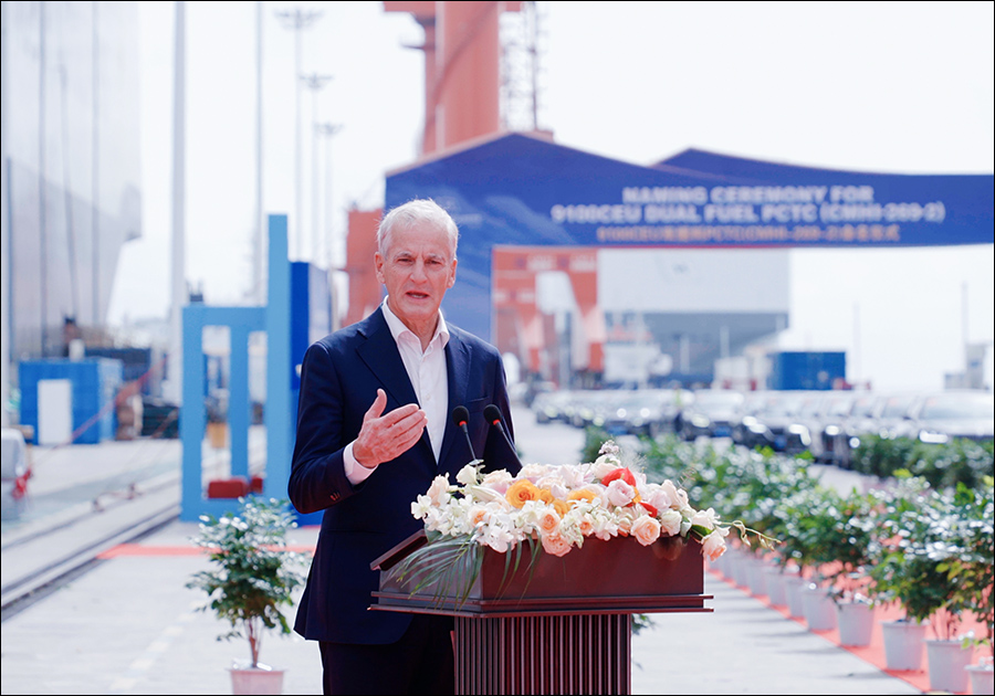 仪式上,斯特勒高度评价了9100车PCTC项目对于推动全球“绿色航运”发展的重要意义,认为该项目是挪威工业企业与中国企业合作的典范。他强调了中挪两国在系统性减少各自航运业排放上的成就与贡献,并期待两国能继续开展深入合作,共同应对全球挑战,促进绿色转型发展。