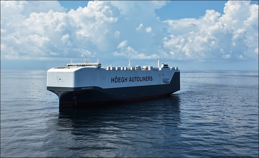 招商工业与礼诺航运合作的“极光级”9100车双燃料汽车滚装船系列船建造订单已生效12艘,并于8月1日提前交付了首制船。该船入级DNV船级社,全长199.9米、型宽37.6米、型深14.53米,设计吃水9.35米,运载能力达9100车,是行业内已交付的最大、最环保的汽车滚装船。