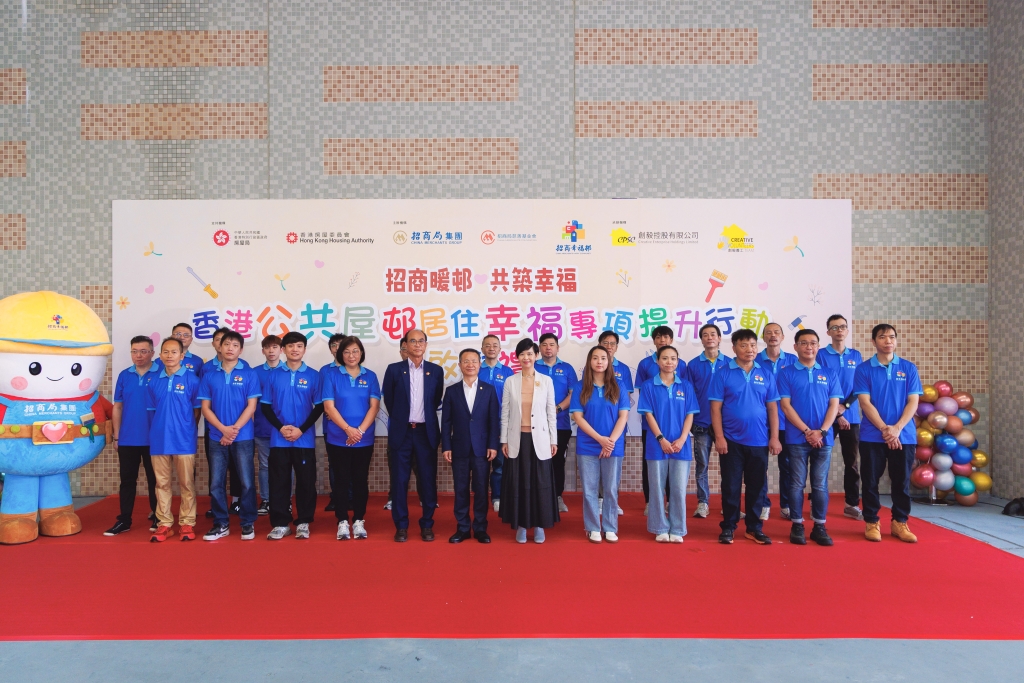 6月20日,由招商局集团主办、招商创毅承办,香港特区政府房屋局支持的“招商暖邨・共筑幸福”—香港公共屋邨居住幸福专项提升行动在葵涌石篱(二)邨正式启动。香港房屋局局长何永贤、招商局集团董事钟国东出席启动仪式并致辞。集团总经理助理兼社会工作部部长李亚东、香港房屋署副署长杨耀辉等参加启动礼活动。