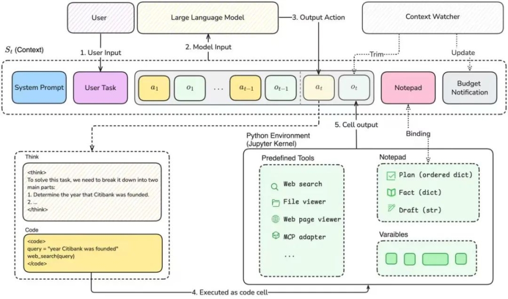 在L0系统研发过程中,团队创造性提出结构化Agent框架——Notebook-Agent(简称“NB-Agent”),使Agent不再只是简单地执行指令,而是能够理解一个模糊的、高层次的目标,并自主地将其分解、规划、分配给“团队”内的不同“角色”,并通过动态沟通和反馈来调整策略,最终完成任务。