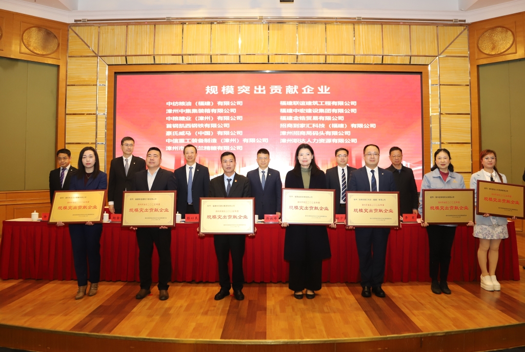 会上还为漳州开发区2025年度纳税大户、规模突出贡献企业、资源综合利用企业和企业优秀管理奖获得者颁发纪念奖牌、纪念奖杯。
