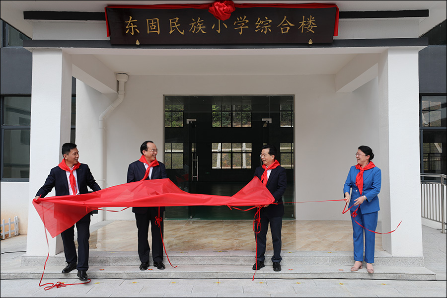 缪建民一行还参加了东固民族小学综合楼揭牌仪式。东固民族小学是一所全日制完全小学,学校创建于清朝光绪戊子年(1888年),地处东固畲族乡。招商局自2021年以来共计投入490万元援建青原区东固民族小学综合楼,目前综合楼已竣工。在综合楼揭牌仪式上,缪建民指出,招商局一直高度重视教育发展,在创局之初的晚清洋务运动时期,就捐助新式教育,创办了招商局公学,并捐办北洋大学堂(天津大学前身)、南洋公学(上海交通大学前身)等一批新式学校,为中国教育事业发展作出了重要贡献。在全面推进乡村振兴新时期,招商局集团将把帮扶地区教育事业发展,作为对口支援工作重要着力点。援建东固民族小学综合楼作为招商局对口支援青原的第一个项目,是帮扶青原的起点,希望综合楼的建成投用能为革命老区的学生们提供良好的学习环境。