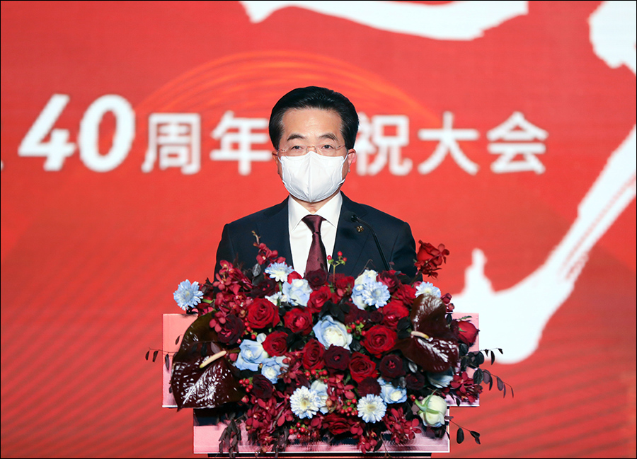 中国南山集团董事长杨国林系统回顾了中国南山40年的创业历程,以“得益于党的坚强领导、得益于改革开放、得益于市场化机制”总结了中国南山40年来稳健发展的根本原因。面对百年南山梦想,他表示,全体中国南山人将担当新使命,坚决贯彻 “两个一以贯之”。立足新发展,坚定推进深化改革。面对新格局,笃定践行守正创新,憧憬新愿景,矢志不渝永葆激情。