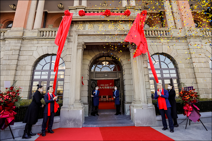 缪建民和张军立共同为“轮船招商总局”揭幕,祝福外滩九号楼蝶变盛启,远航未来