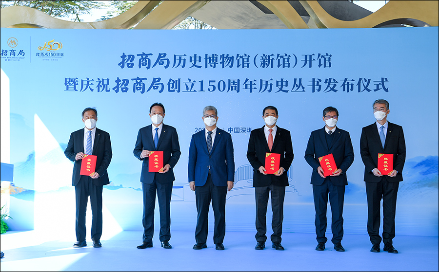 12月26日,在招商局创立150周年之际,招商局历史博物馆(新馆)开馆暨庆祝招商局创立150周年历史丛书发布仪式在深圳蛇口微波山成功举办。集团董事长缪建民,总经理胡建华,董事王宏,外部董事陈佐夫、吴献东,原外部董事吴安迪,副总经理邓仁杰,董事段湘晖,总会计师周松,副总经理李百安,总经理助理、办公室主任张军立出席活动。