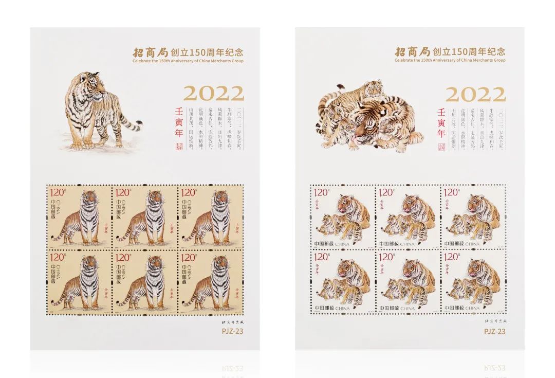 2022年是壬寅虎年,中国邮政专门发行PJZ-23《招商局创立150周年纪念》加字张一套,这是全国发行的第二十三款加字张,在《壬寅年》虎年特种邮票上加字,因其数量稀少,发行题材意义重大,具有特殊的收藏价值。