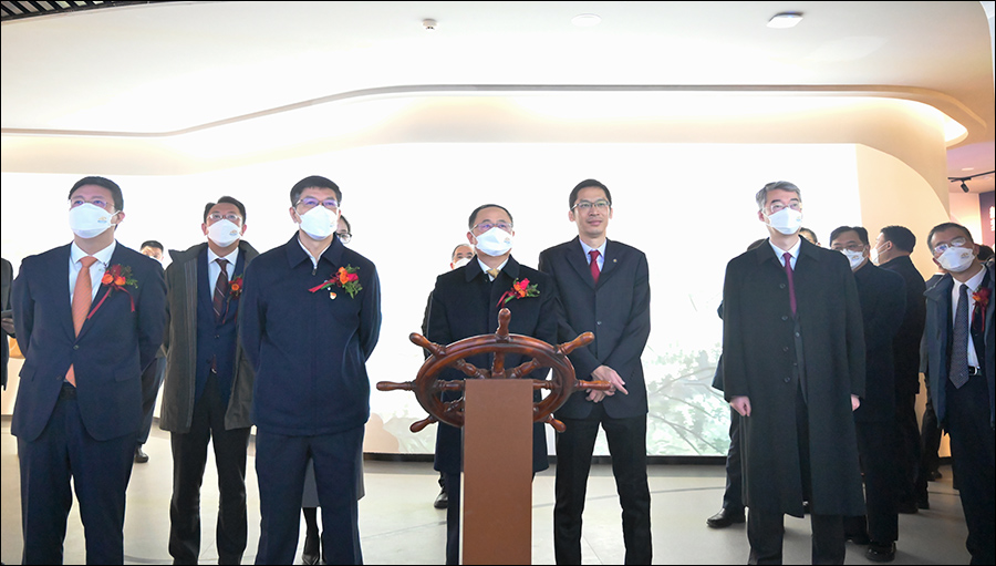 胡建华、缪昌文、周松等领导和长航集团老员工代表共同为招商局长江历史文化中心启用揭幕并参观招商局长江历史文化展。