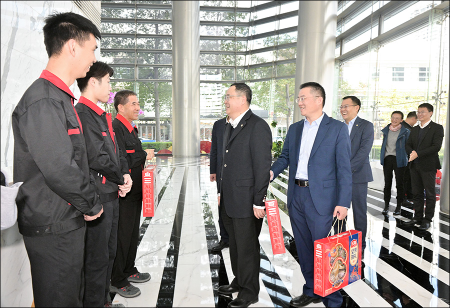 随后,胡建华来到招商局广场一楼大堂,看望坚守一线的物业管理人员,感谢大家一年来的辛勤工作,为同事们提供了良好的物业服务。春节将至,希望大家继续绷紧安全这根弦,做好隐患排查,落实好各项安全措施。胡建华嘱咐相关负责人关心好物业管理人员的工作生活,让大家过一个欢乐祥和的新春佳节。