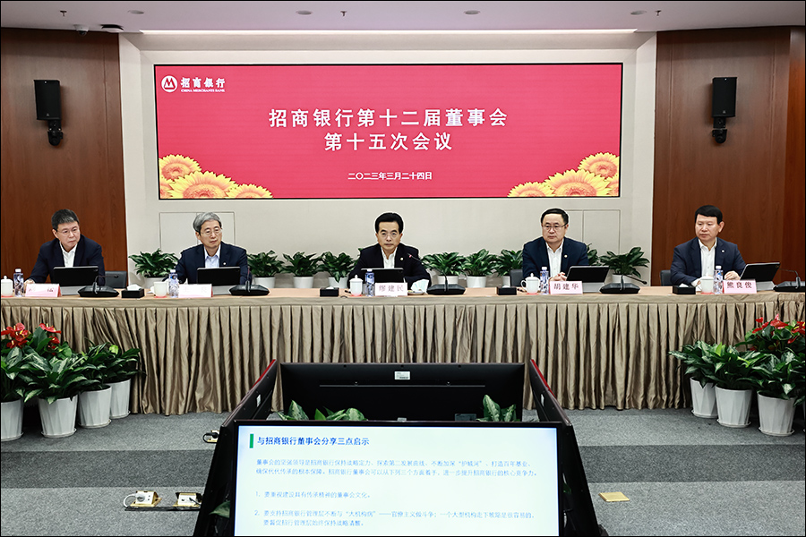 3月24日,招商局集团董事长、招商银行董事长缪建民主持召开招商银行第十二届董事会第十五次会议。集团总经理、招商银行董事胡建华,集团总会计师、招商银行董事周松,集团总经理助理、招商金控总经理、招商银行董事洪小源,招商银行执行董事、行长王良,集团首席数字官、招商金控副总经理、招商银行董事张健,招商银行监事长熊良俊出席会议。