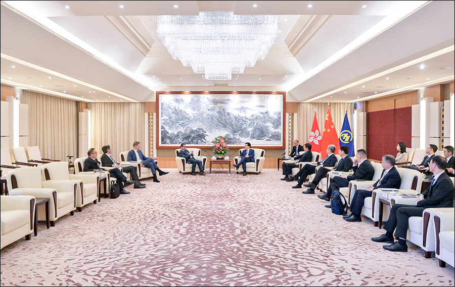 3月28日,集团董事长缪建民在香港招商局大厦会见地中海航运集团主席Diego Aponte一行,双方就深化港口、航运、物流等方面的合作进行交流。集团副总经理邓仁杰,集团总经理助理、集团办公室主任张军立,地中海航运集团首席执行官Soren Toft、TIL首席执行官Ammer Kanaan参加会见。