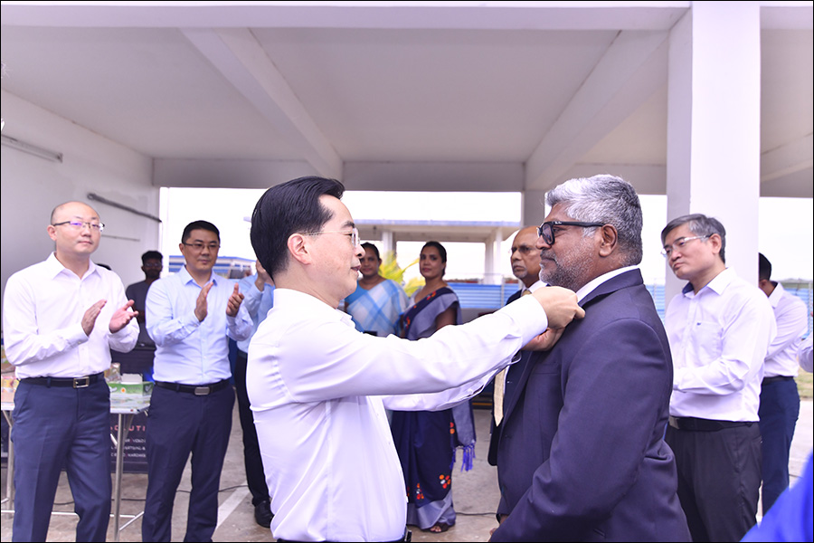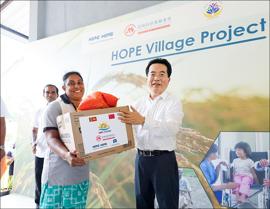23日下午,招商港口在斯里兰卡肯达村发起的“爱心村”乡村振兴项目23日举行竣工交接仪式。缪建民与戚振宏大使为“爱心村”剪彩揭牌。当地数百名村民参加仪式。