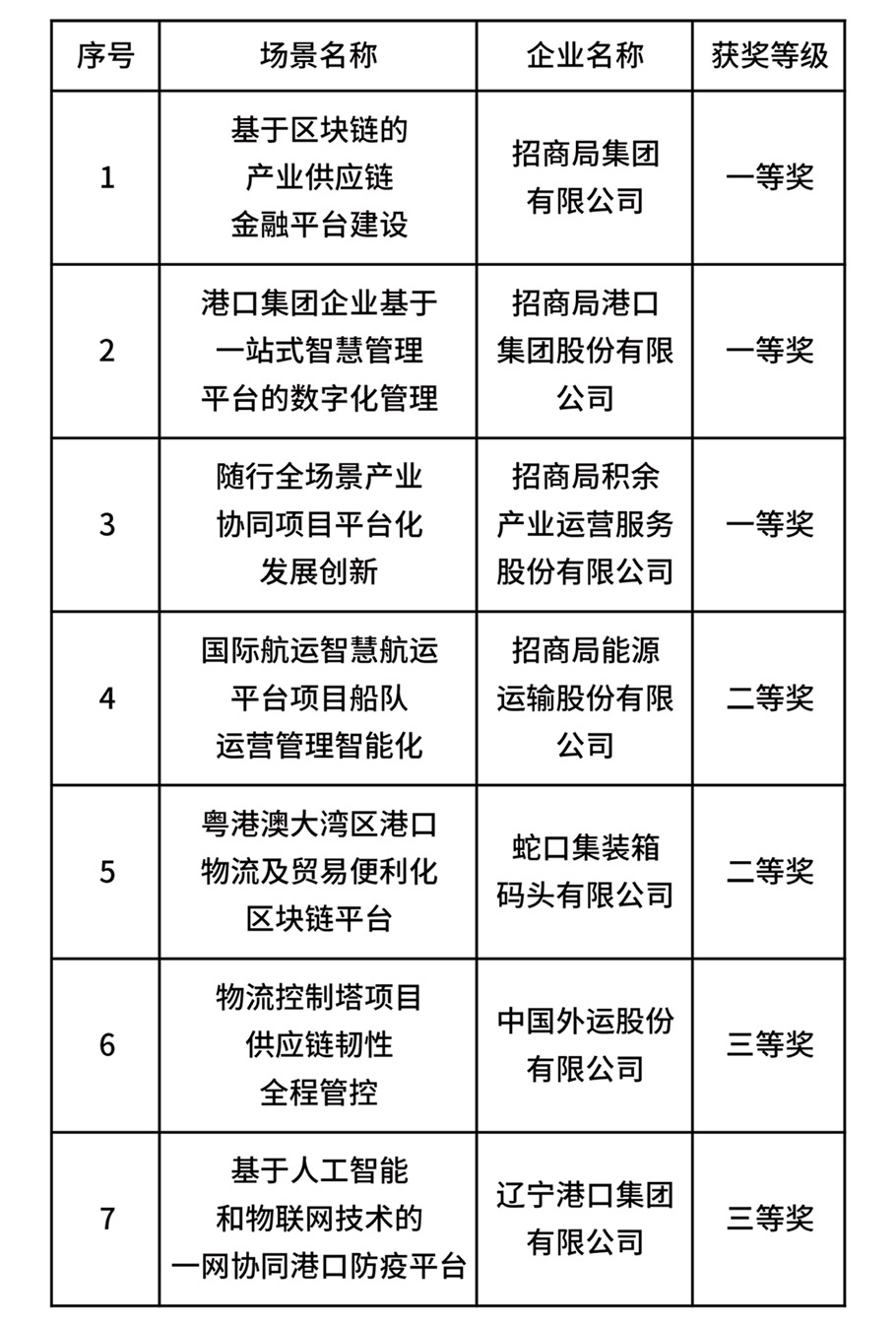 招商局集团首届国企数字场景创新专业赛获奖名单