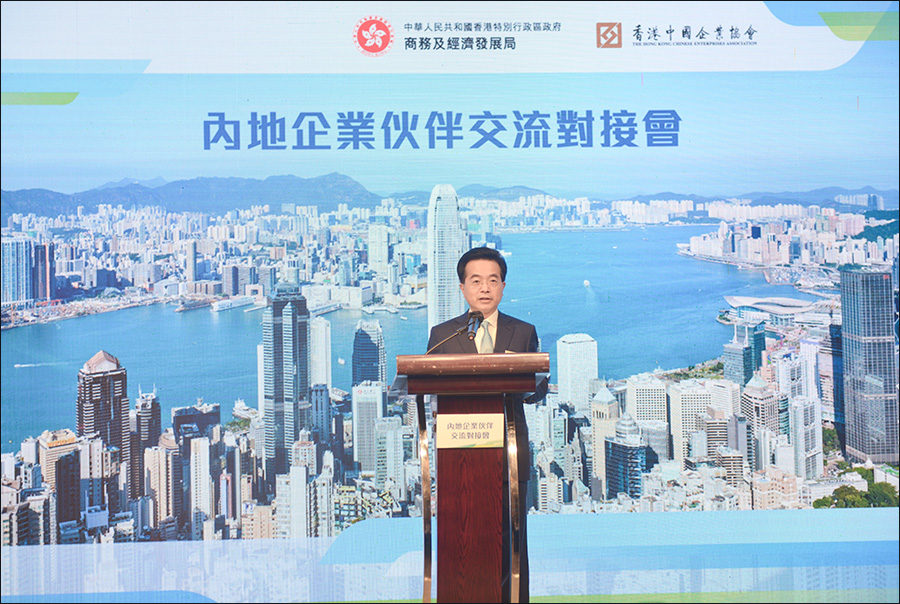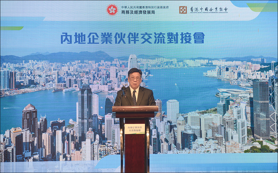 7月31日,香港中国企业协会与特区政府商务及经济发展局联合举办“内地企业伙伴交流对接会”,促进中资企业与香港专业服务团体建立联系。香港商务及经济发展局局长丘应桦,中企协会会长、招商局集团董事长缪建民出席开幕礼并致辞。