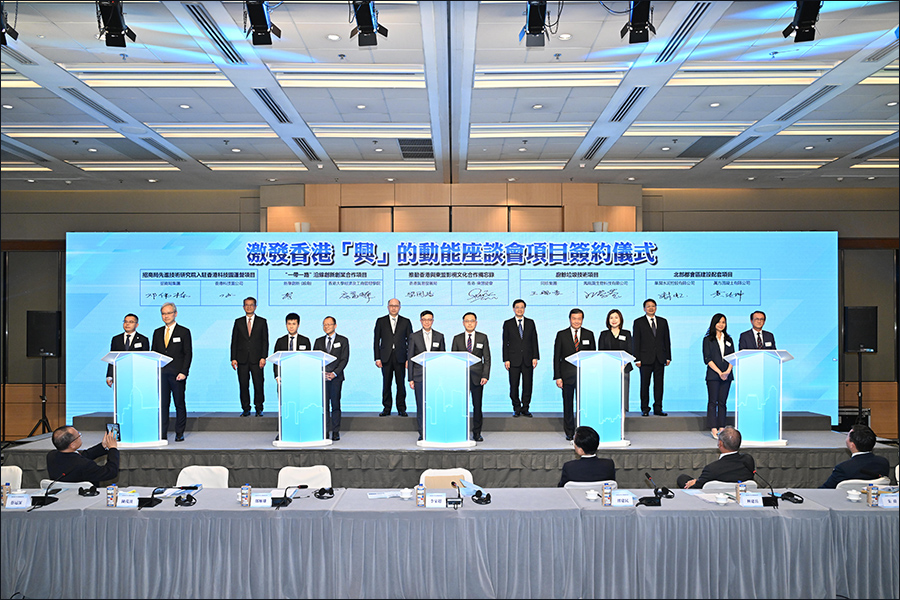 座谈会上,在李家超、郑雁雄等共同见证下,招商局集团首席战略官、战略发展部/科技创新部部长邓伟栋与香港科技园公司首席企业发展总监姚庆良代表双方签署了项目合作协议。
