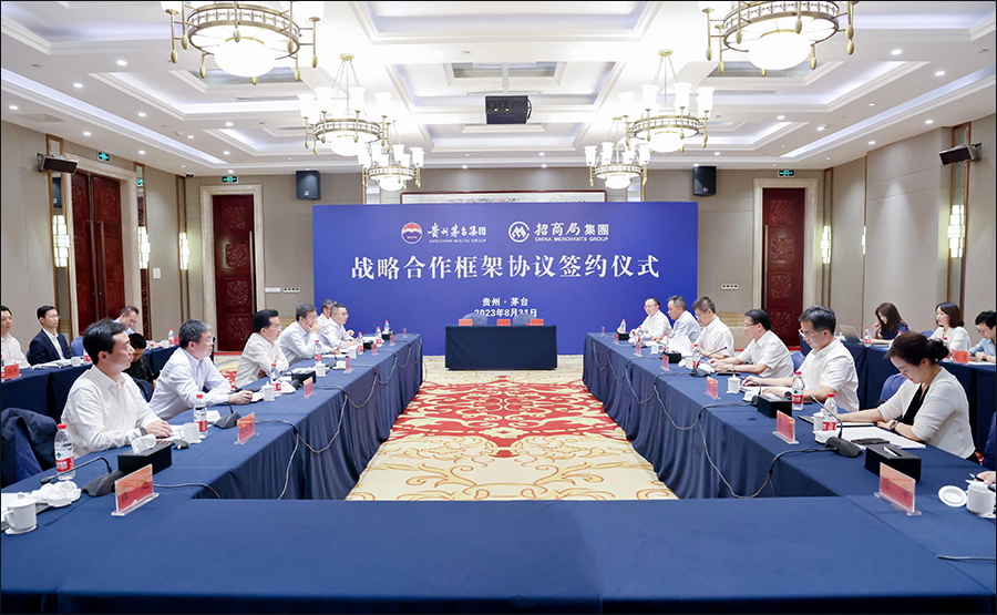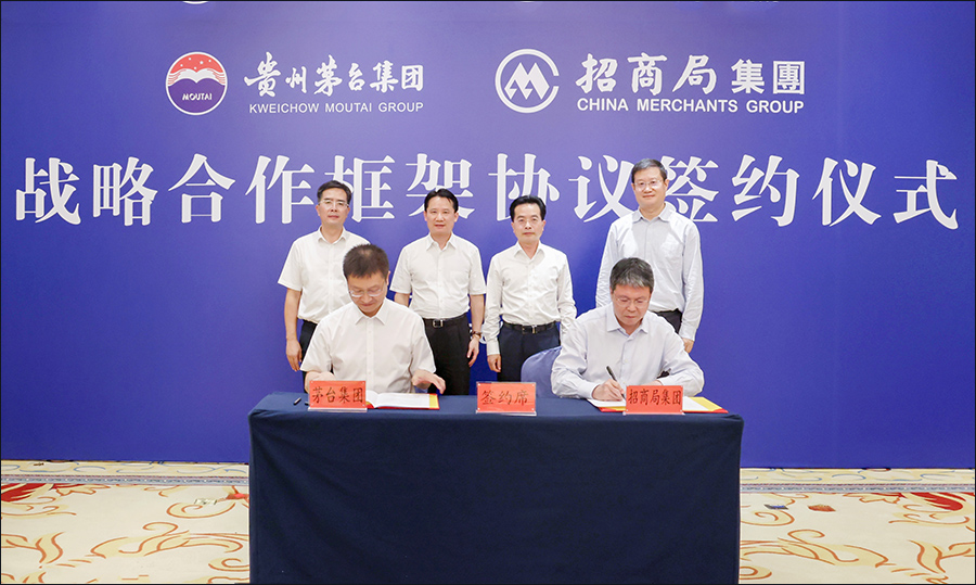 缪建民对茅台集团的发展给予高度评价,并介绍了招商局集团的总体发展情况。他说,茅台世界闻名,不仅是一瓶酒,更是一张香飘世界的文化名片,饱含了时间的深厚积淀、空间的独特影响和人文的历史传承,打造了世界级的品牌。当前,招商局集团正以推动传统产业转型升级和加快发展战略性新兴产业作为“第三次创业”的关键抓手,坚持“两端发力”,着力打造“两条曲线”,加快建设世界一流企业。希望双方以此次签约为新的起点,强强联合、优势互补,开展更高水平、更宽领域、更深层次的战略合作,共同打造合作新模式,推动双方高质量发展再上新台阶、再创新佳绩。