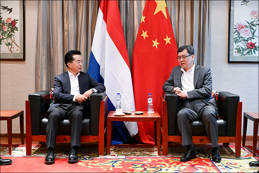 9月19日上午,缪建民在荷兰海牙拜会了中国驻荷兰大使谈践。缪建民感谢使馆长期以来对招商局集团在荷兰经营发展的指导支持。他表示,招商局集团高度重视在荷兰的发展,今后将继续发挥综合优势,加大在荷兰的业务发展力度,希望大使馆继续给予关心支持。谈践高度评价招商局为“国家栋梁、历史传承、改革先锋”,并赞同招商局集团的国际化发展理念。他表示,使馆愿意为招商局集团在荷兰的发展规划提供对接协助,将持续促进中国企业与欧洲政府及企业间的交流。中国驻荷兰王国商务参赞金远、三等秘书李希参加会见。