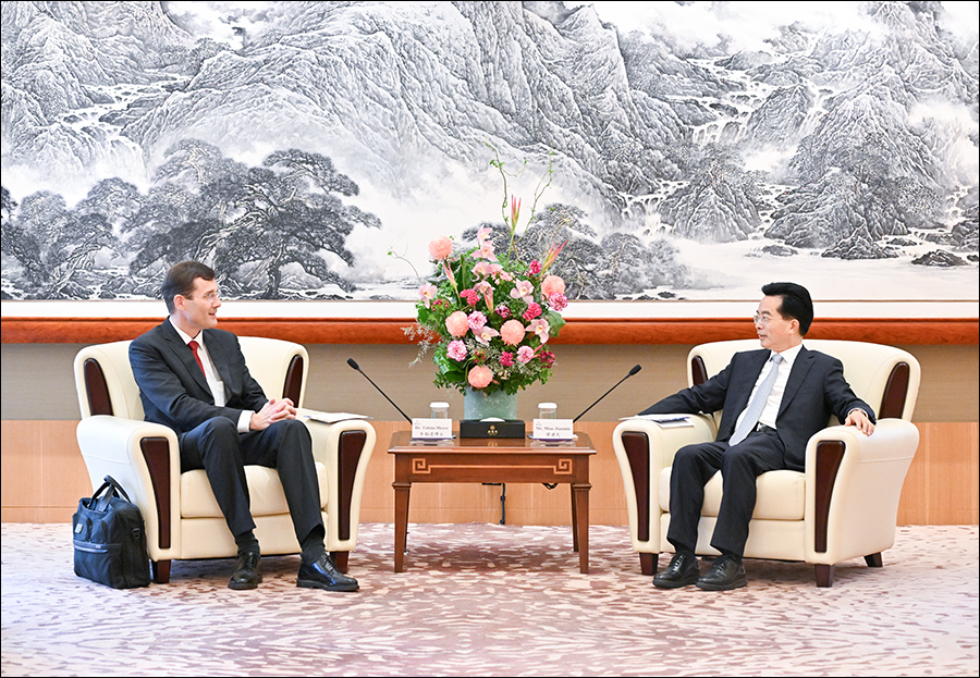 缪建民欢迎麦韬远博士一行到访招商局,并介绍了招商局整体经营及业务布局情况。他表示,当前中国着力扩大高水平对外开放,推动环球贸易平稳增长,DHL集团和招商局集团同为构建国际稳定供应链的重要参与者,中外运敦豪更是双方多年来合作的成功典范,希望双方加强交流,着眼未来,进一步深化在航空货运、绿色能源等多领域的合作,加强业务往来。