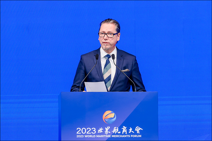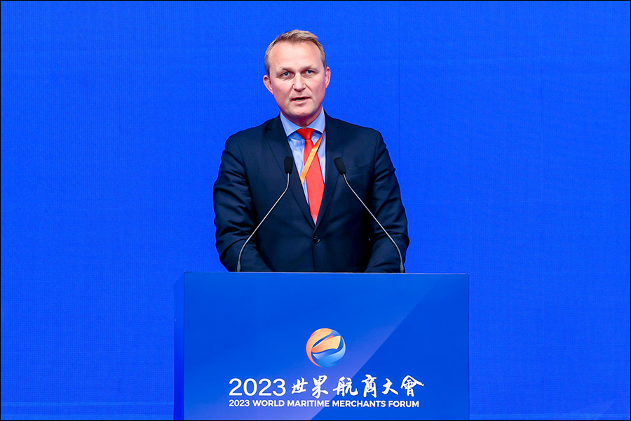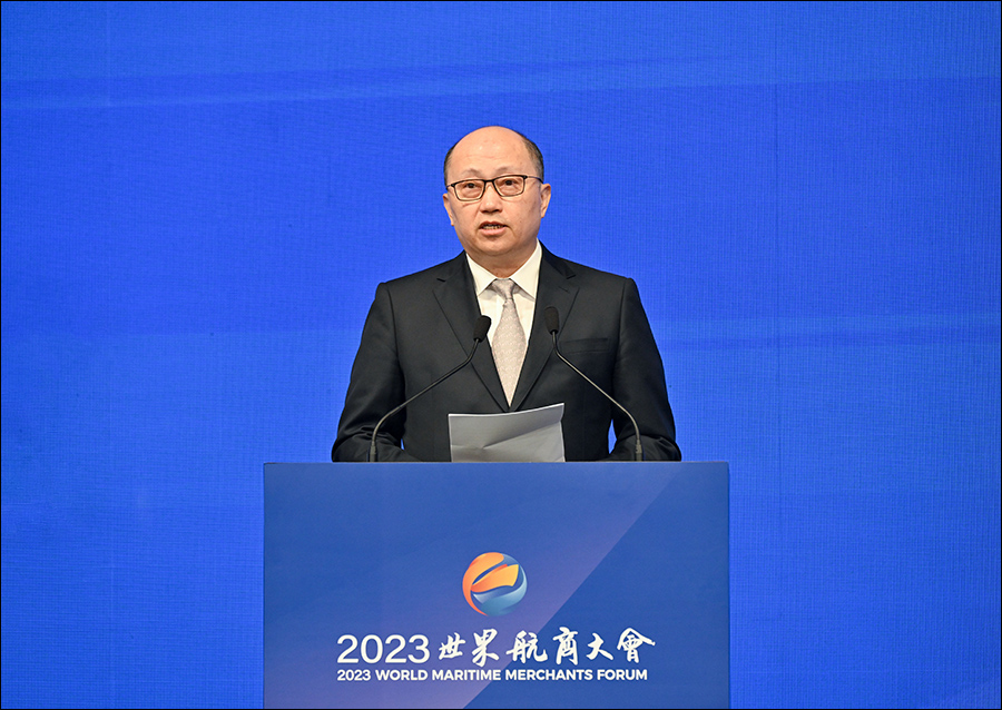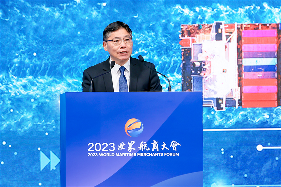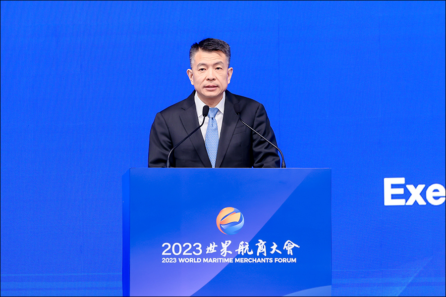 招商局集团董事长缪建民作题为《开放融合 拥抱航运大变革时代》的主旨演讲