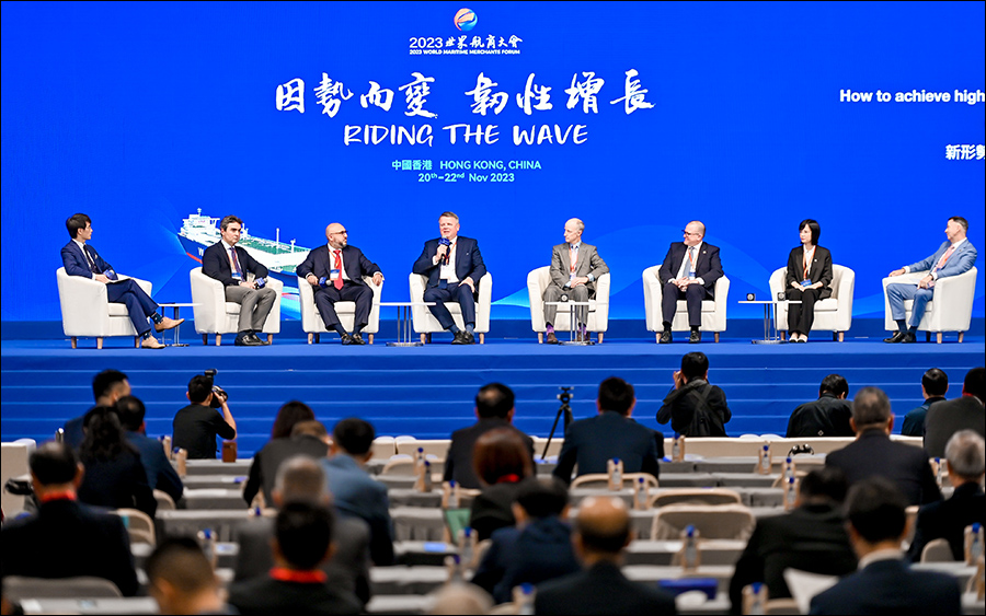 全球航运界的年度盛会──第三届世界航商大会于2023年11月20日在中国香港盛大开幕。作为香港海运周2023最为重要的活动之一,大会由招商局集团牵头,联合香港特区政府运输及物流局、波罗的海国际航运公会(BIMCO)、国际航运公会(ICS)、香港船东会(HKSOA)共同主办。全国政协副主席梁振英、香港特区行政长官李家超、中央人民政府驻香港特别行政区联络办公室主任郑雁雄、中华人民共和国交通运输部副部长付绪银、香港特区政府运输及物流局局长林世雄分别致辞。招商局集团董事长缪建民作主旨演讲。招商局集团总经理石岱,集团领导钟国东、邓仁杰、段湘晖、周松、李百安、冯波鸣、王秀峰、李亚东、张军立、张锐等出席活动。