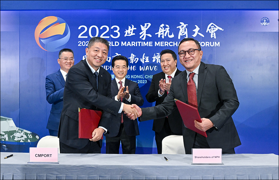 招商局港口首席执行官徐颂、EUI董事哈里•祖尔纳迪代表双方签署协议,签约仪式由招商局港口董事总经理陆永新主持。