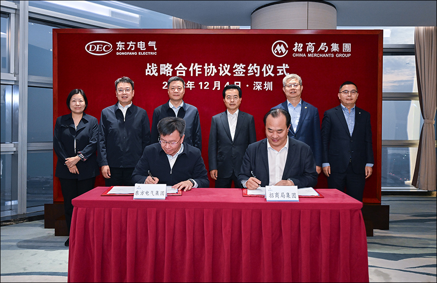 12月4日,招商局集团与东方电气集团在深圳招商局广场签署战略合作协议。招商局集团董事长缪建民、东方电气集团董事长俞培根出席并见证签约,招商局集团副总经理李百安与东方电气集团副总经理李忠军代表双方签约,招商局集团总经理助理、董事会秘书,集团办公室主任张军立参加活动。