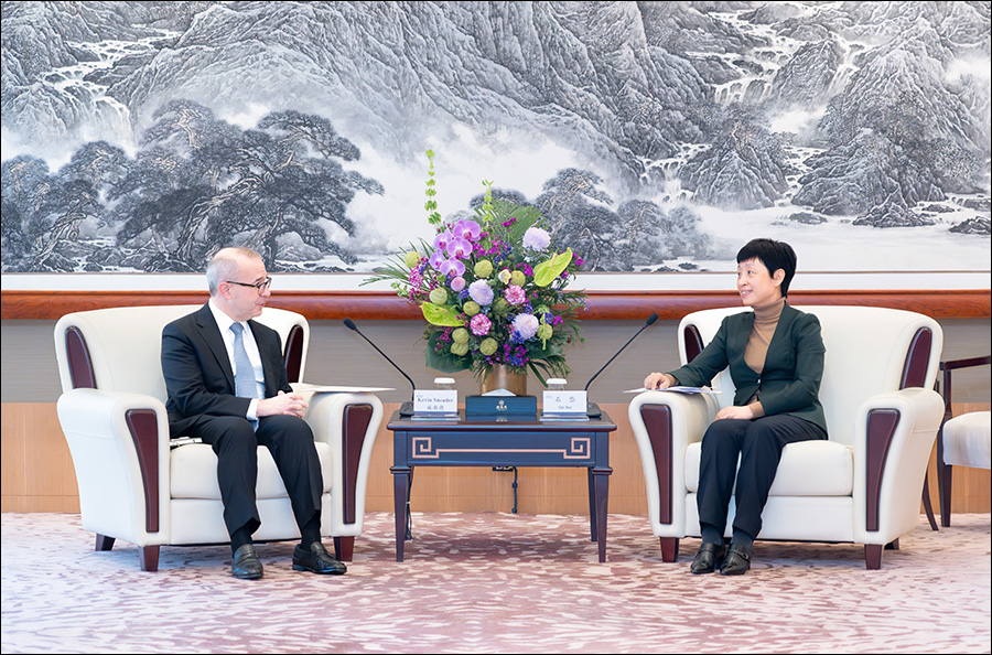 石岱欢迎施南德一行到访招商局,并介绍了招商局的总体情况。她表示,招商局创立于1872年,当前业务涵盖交通物流、综合金融、城市与园区综合开发等产业,正在着力打造“两条曲线”、推动“第三次创业”。高盛是国际知名的投资银行、证券和投资管理公司,积极投资中国市场。招商局和高盛同为百年企业,双方在投行、投研及其他金融业务方面有着良好的合作基础,希望在新兴产业投资研究、海外资本市场服务和资产配置等方面进一步深化合作。